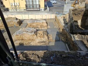 まずは基礎を設置する位置に合わせて 根切り(掘削)作業 を行いました。